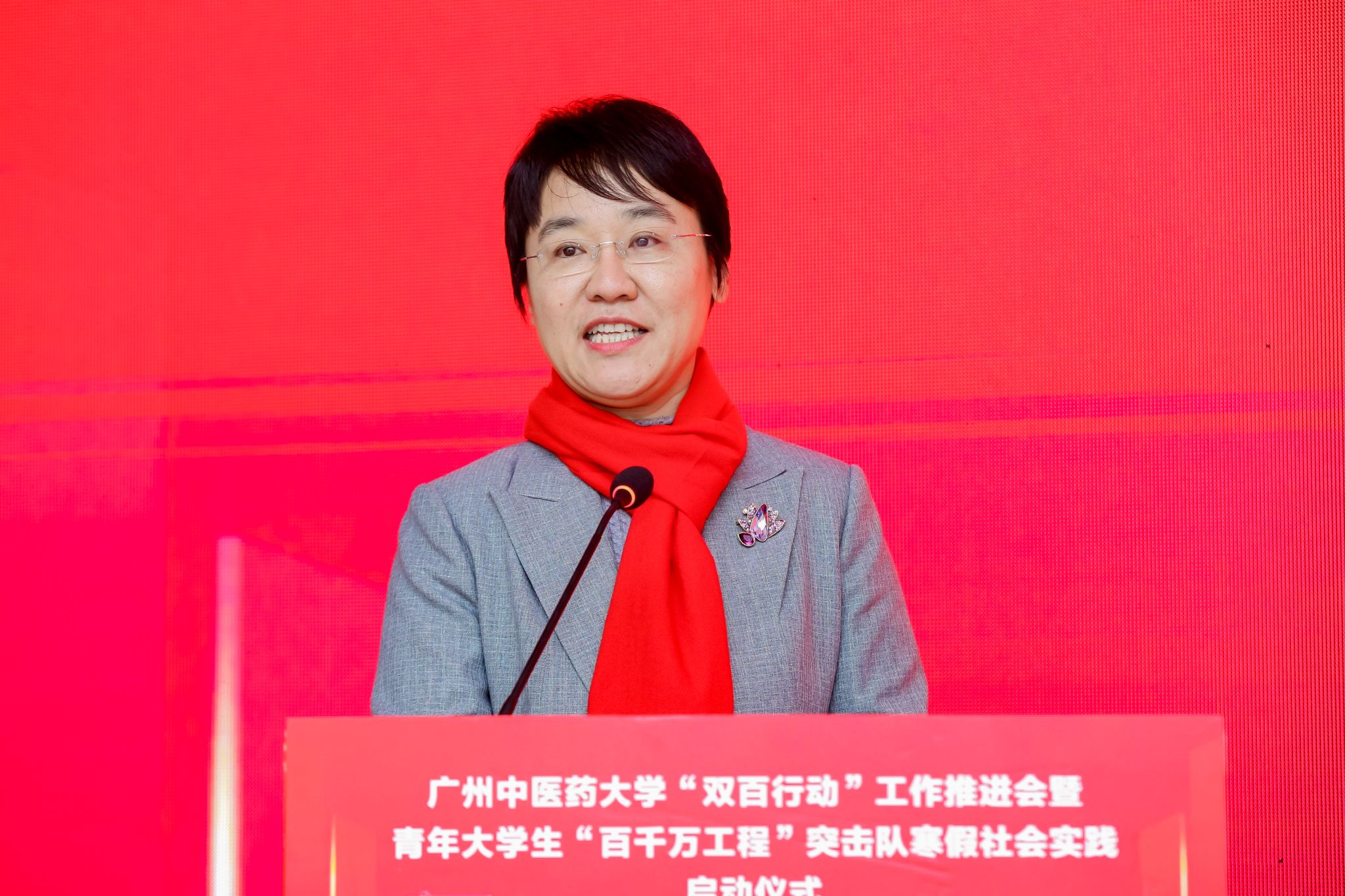 Zhai Xuemei, Deputy Secretary of the Qingyuan Municipal Party Committee, delivers a speech.