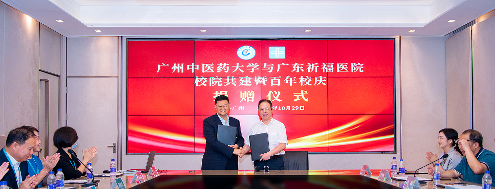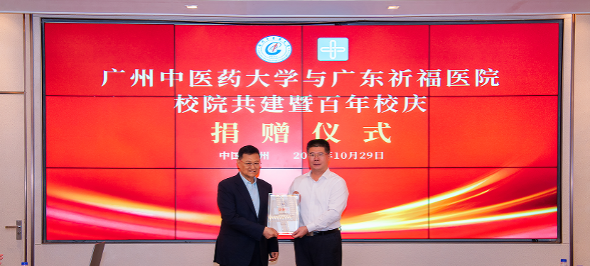 10月29日,ac米兰官网中文网站与广东祈福医院校院共建暨百年校庆捐赠仪式在祈福医院举行。学校党委书记陈文锋、副校长刘中秋,番禺区委常委、组织部部长、区委人才工作局局长唐力明,祈福集团董事长、广东祈福医院创始人彭磷基教授,钟村街道党工委书记张靖鹰,番禺区卫健局副局长方志远,学校相关职能部门、祈福医院相关负责人等出席。
