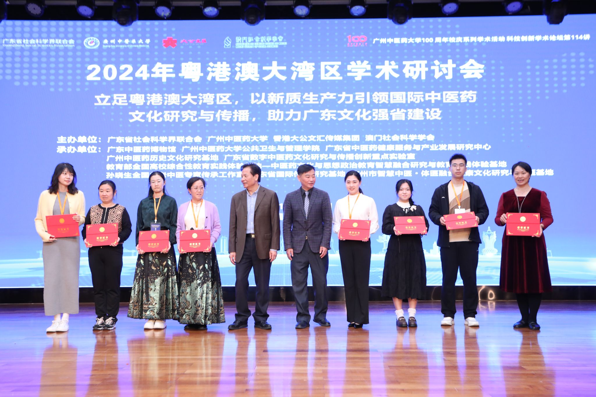 大会颁发了“粤港澳大湾区中医药(民族医药)文化科普讲解大赛”“粤港澳大湾区中医药(民族医药)文化精品陈列展览评选与推介活动”奖。