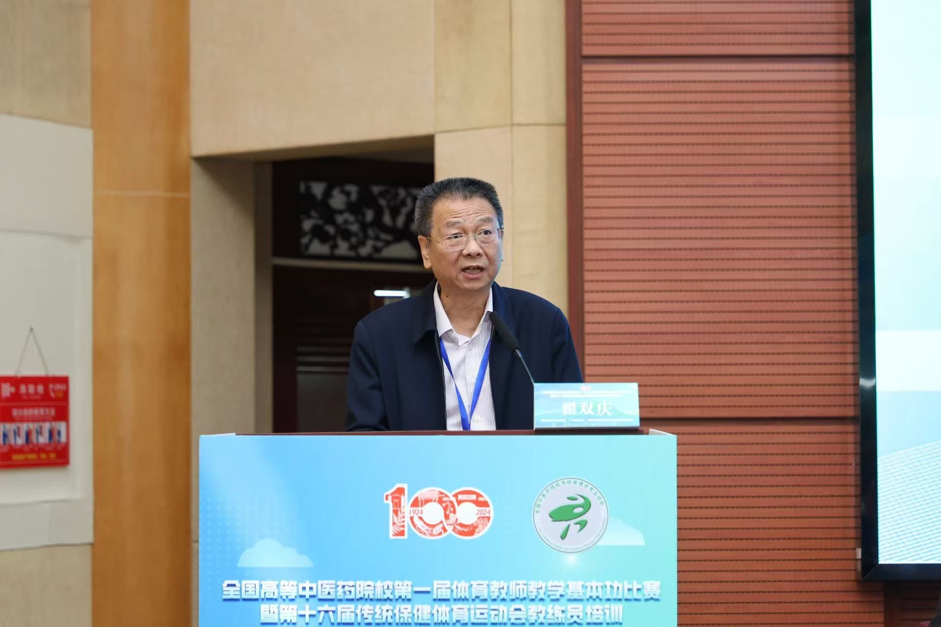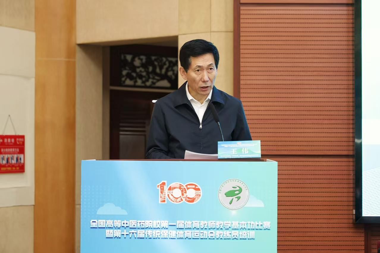 他表示,举办体育教师教学基本功比赛以及教练员培训活动,旨在深入贯彻落实习近平总书记关于教育和体育重要论述精神、全国教育大会精神,推动全国高等中医药院校体育教育改革与发展。期盼比赛充分点燃体育教师的教学热情,大力促进教学方法的推陈出新,切实提高体育教学的针对性与实效性,进一步强化各中医药院校之间的交流与协作,携手推动中医药院校体育教育事业的蓬勃发展,为推广传统保健体育、助力增进人民健康贡献力量。