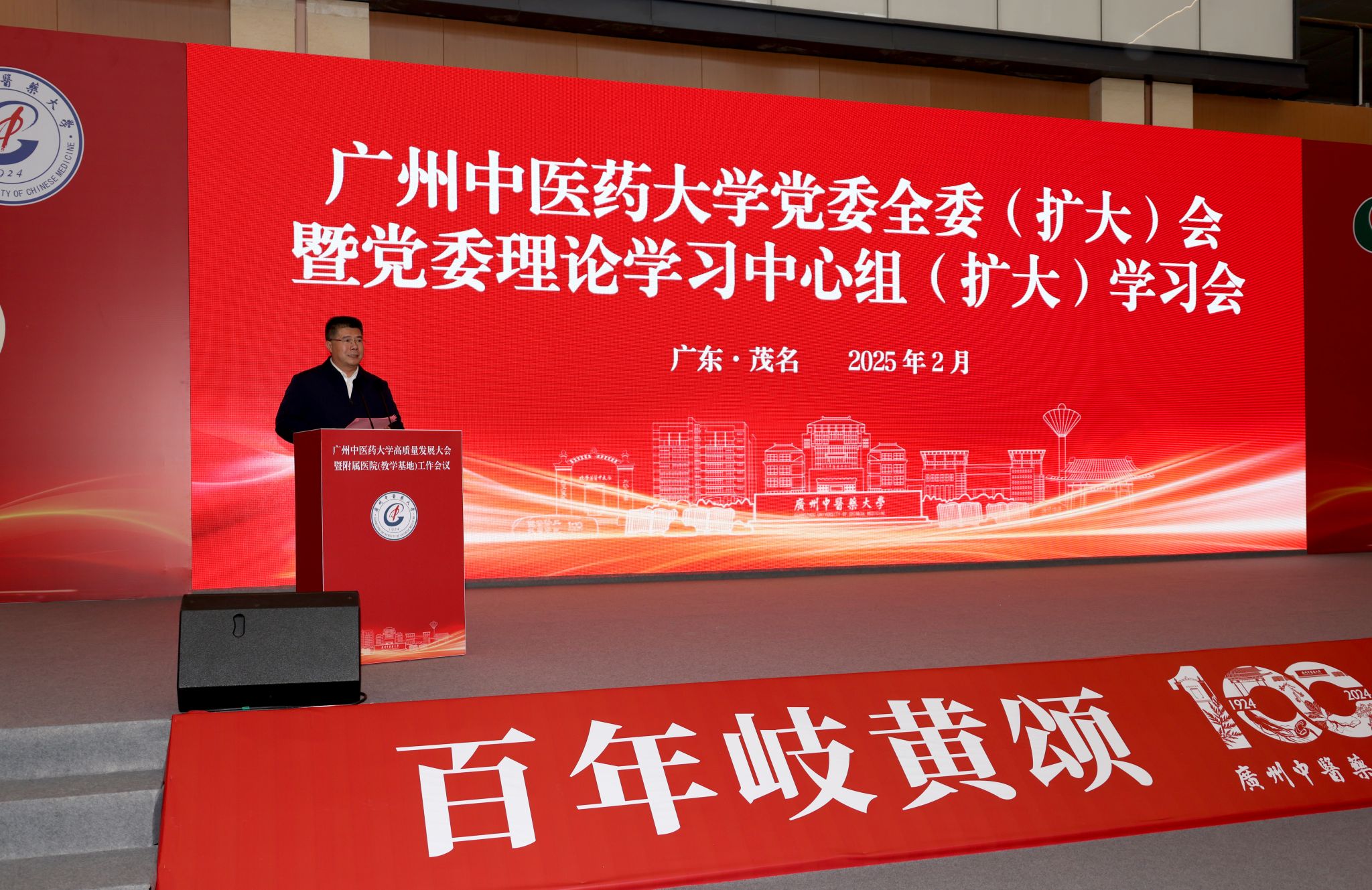 “在百舸争流千帆竞发中,慢发展就是退步!全校上下要牢固树立以实绩论英雄导向,坚持守正创新、苦干实干,全面推进学校教育科技人才‘三位一体’综合改革取得新成效,着力培育中医药新质生产力向现实生产力转化落地成势,用中医药教育、医疗资源优势服务地方经济社会建设,用心用情用力答好‘何以再造一个新广中医’这一时代必答题,为全省在推进中国式现代化建设中走在前列作出广中医新的更大贡献!”2月23日-24日,ac米兰官网中文网站高质量发展大会暨附属医院(教学基地)工作会议在茂名医院新院区召开,学校党委书记陈文锋在会议中这样强调。
