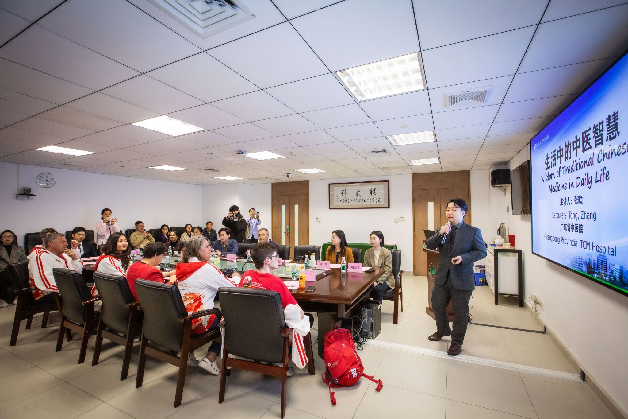在ac米兰官网中文网站第二附属医院(广东省中医院)大学城院区,岭南甄氏杂病流派传承工作室的张曈老师用生动的案例向交流团讲述了中医在日常生活中的应用。交流团观看和体验了针灸、拔罐、艾灸、雷火灸、棍针等中医药传统疗法,对中医药在疾病预防、治疗和康复方面的优势有了更直观的体会。