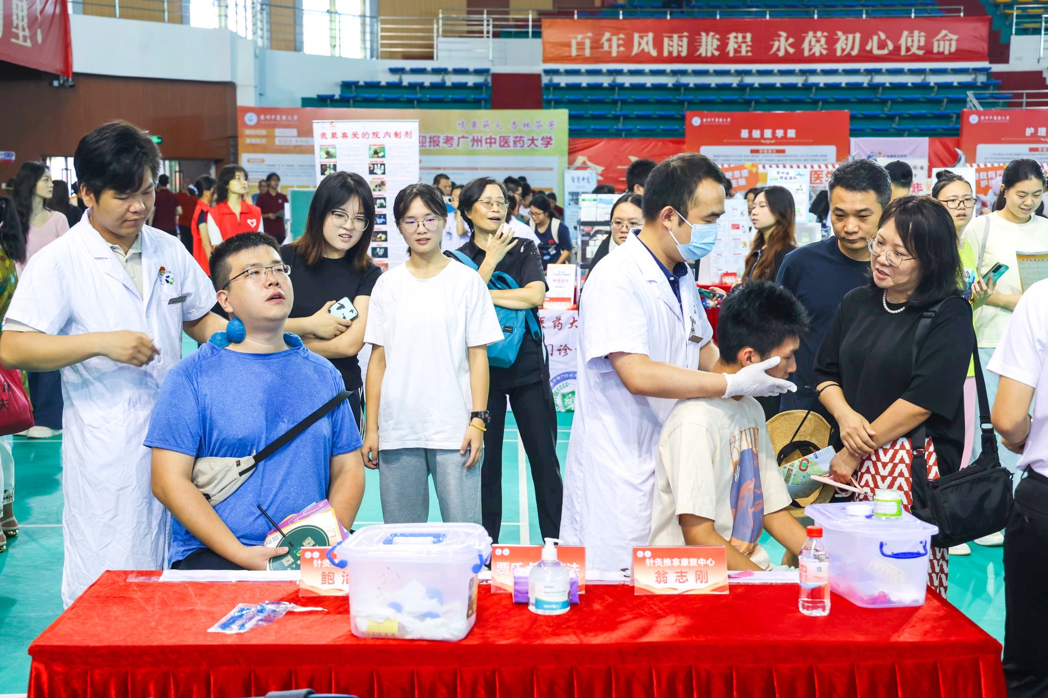 在青蘅校园文化节上,高考学子及家长现场接受中医辨证论治,亲身体验岭南火针、贾氏点穴、棍针拨筋、铜锤疗法、温通刮痧、易罐等中医药特色疗法,玩转趣味中药游戏,聆听超燃志愿故事,学习必备急救知识,体验炫酷的VR和机器人,挑战活力满满的体能游戏,品尝中药茶饮,乐享中医药文化盛宴。他们还实地参观游览了校园,走进实验室、博物馆、图书馆、智慧课室,直观感受宜居宜学的校园环境。