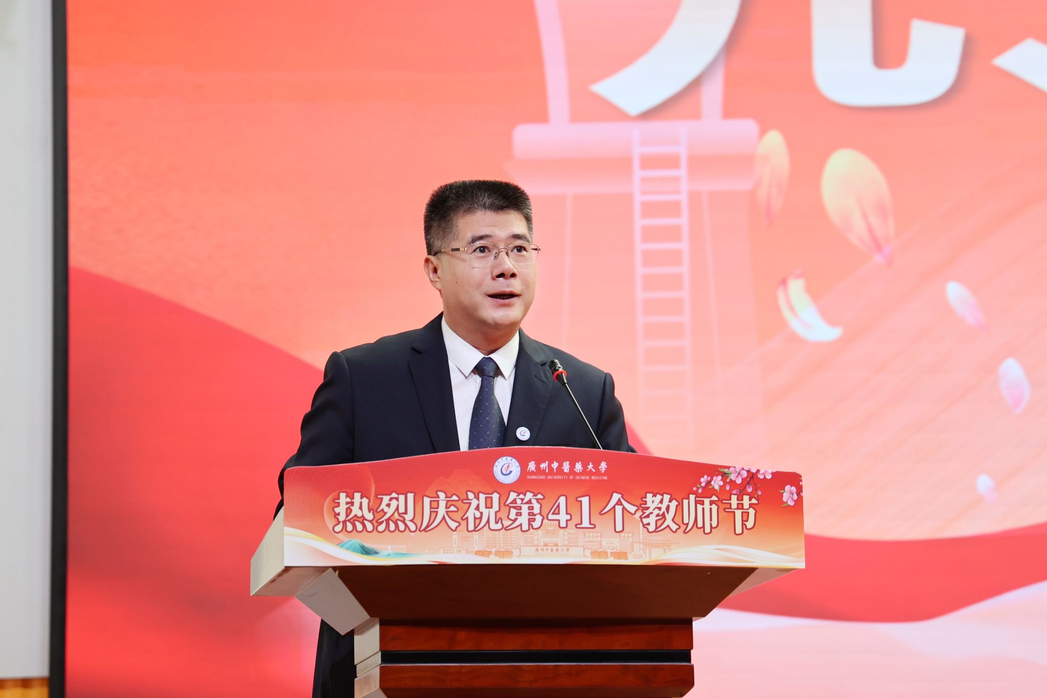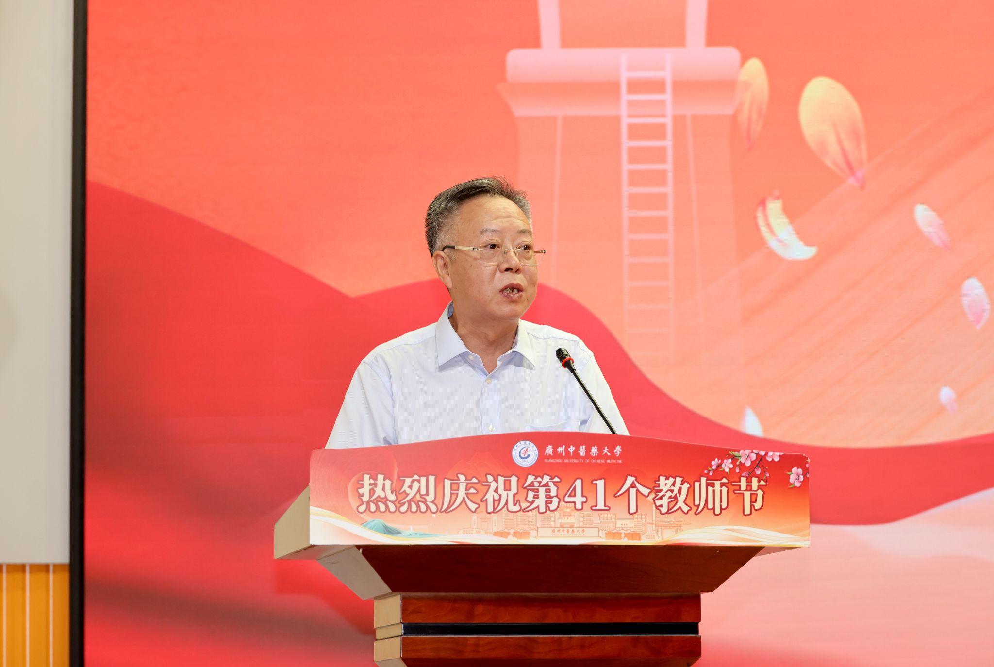 荣休教师代表宋健平教授从教师、科研工作者的角度发表了荣休感言。他表示“荣休”不是终点,而是另一段新旅程的开始,他将换一种方式,继续关注和支持学校的发展,为中医药的传承创新贡献余热。