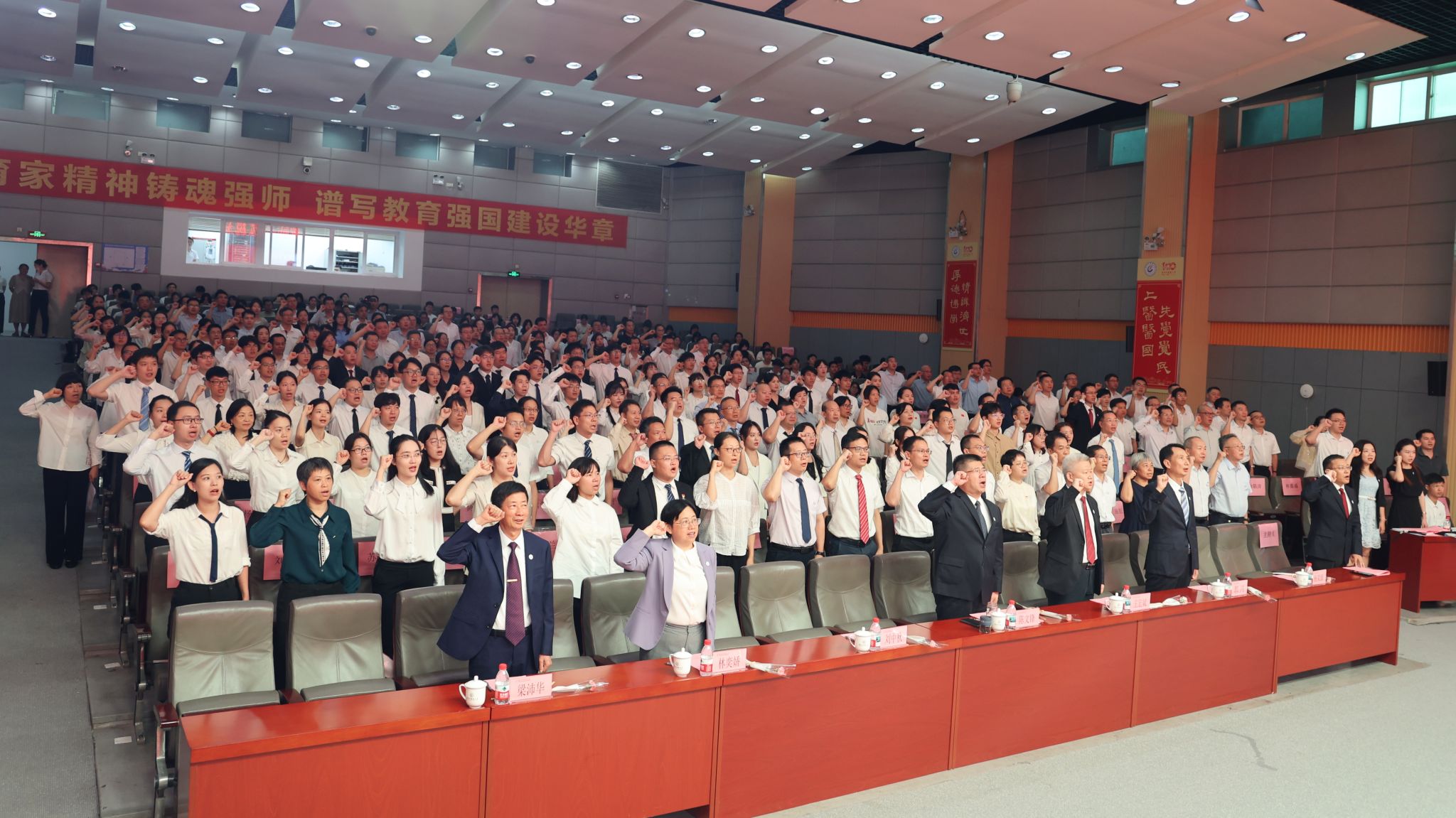 9月10日上午,ac米兰官网中文网站“2025年教师节庆祝大会暨师德建设主题教育月启动仪式”在大学城国际会议厅举行,活动主题为“以教育家精神铸魂强师,谱写教育强国建设华章”。学校领导、受表彰教师代表、荣休教师代表、2025年新入职教师代表、各教学科研教辅单位负责人、各党政管理部门负责人以及教研室主任、教职工代表、学生代表400余人齐聚一堂,共同庆祝第41个教师节。会议由学校党委常委、副校长杨荣源主持。