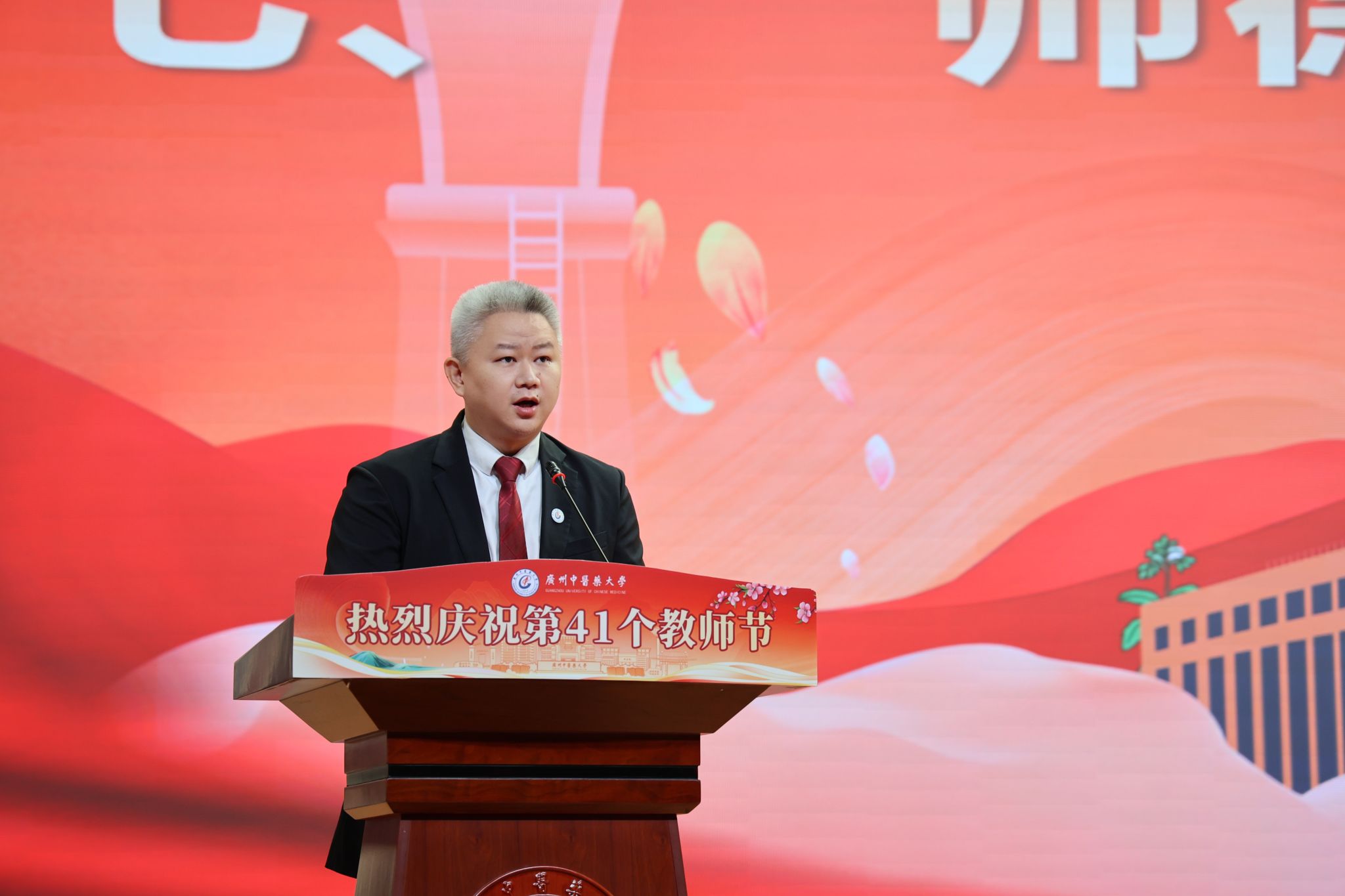 师德医德教师代表、全国卫生健康系统先进工作者、青年岐黄学者、国家级青年拔尖人才、第一临床医学院郜洁教授阐述了作为教育工作者和医务工作者的深刻体会,她自2004年9月考入广中医,毕业后留校工作至今,已有整整21年。她将始终牢记 "三尺讲台系国运,一生秉烛铸医魂",以德立身、以德立学、以德施教,做学生为学、为事、为人的示范。