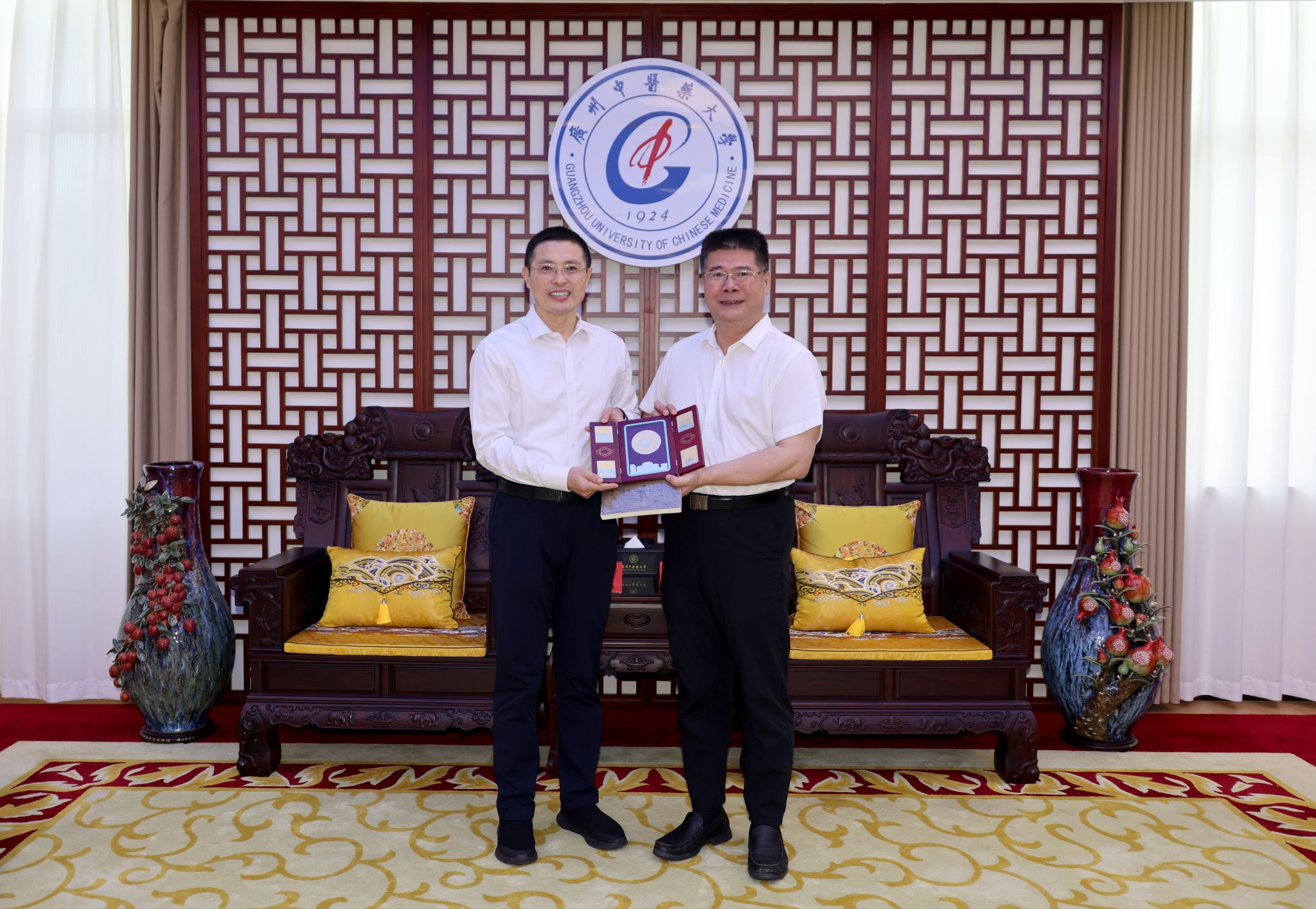9月18日上午,南京中医药大学党委书记乔学斌、校长程海波一行来校调研交流,学校党委书记陈文锋出席座谈会。校长王宏斌主持座谈会。