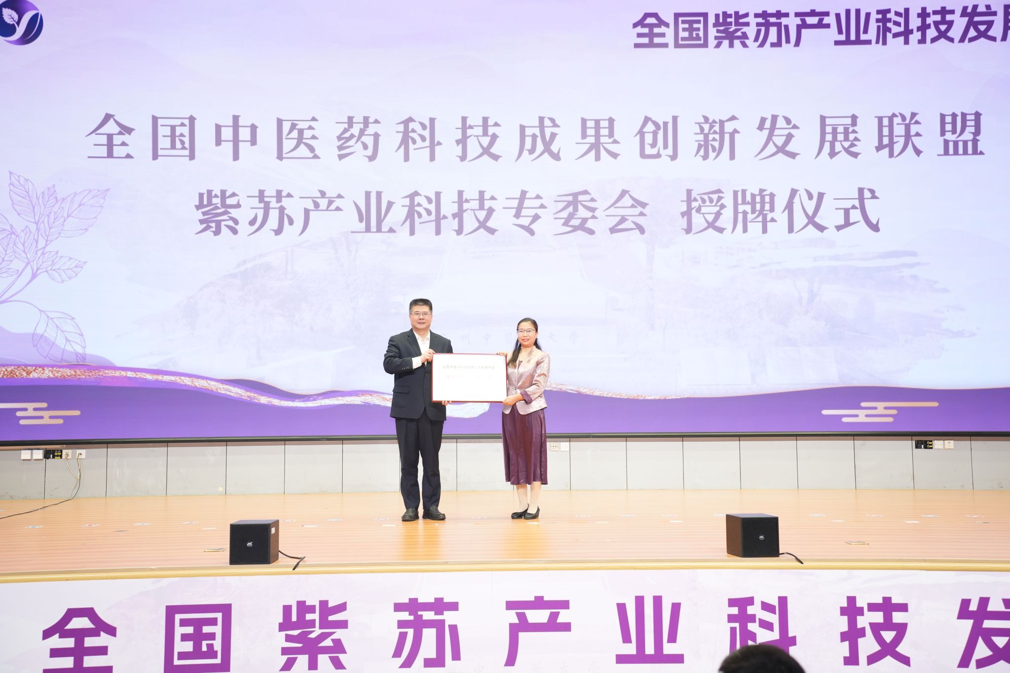ac米兰官网中文网站党委书记陈文锋为全国中医药科技成果创新发展联盟紫苏产业科技专委会授牌,与广东省中医药局副局长柯忠共同为理事单位授牌,标志着我国紫苏产业跨区域、跨领域协同创新的全国性平台正式成立。该专委会将整合华中、东北、西南三大主产区资源优势,打通“种植-研发-加工-应用”全产业链协作壁垒,聚焦技术攻关、成果转化、标准制定等七大核心任务,推动紫苏产业从分散发展向集约化、规模化、标准化高质量发展转型,为行业发展树立新标杆。