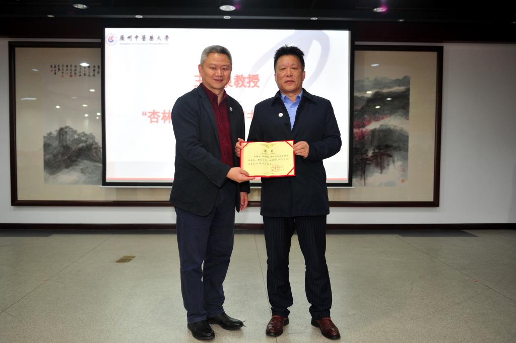 12月5日,由我校主办、学校外国语学院承办的ac米兰官网中文网站中医药翻译与国际传播研究中心揭牌仪式暨首届粤港澳大湾区中医药国际传播高峰论坛在大学城校区举行。广东省社科联党组成员、专职副主席叶金宝,学校副校长王宏斌,国家中医药管理局传统医药国际交流中心处长郑亚峰和世界中医药学会联合会翻译专委会会长单宝枝共同为中心揭牌。王宏斌为南京农业大学典籍翻译与海外汉学研究中心主任王银泉教授颁发杏林学者讲座教授聘书。