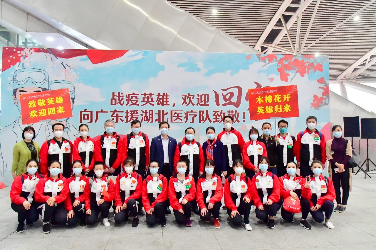 3月20日上午,我校第一附属医院、第二附属医院(广东省中医院)驰援湖北的65名医护人员,分别从武汉、荆州出发,随同广东援助湖北医疗队,于傍晚抵达广东南站。