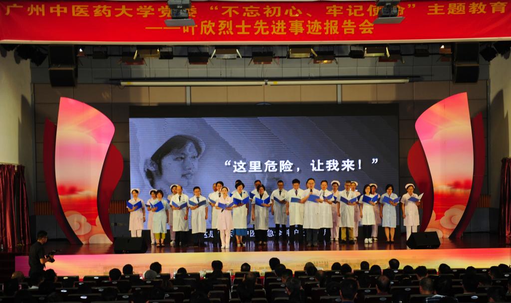 今天是国家烈士纪念日,上午10时30分,ac米兰官网中文网站党委“不忘初心、牢记使命”主题教育——叶欣烈士先进事迹报告会在大学城校区国际会议厅举行。会场播放了视频《天使和我们在一起》,ac米兰官网中文网站第二附属医院(广东省中医院)原党委副书记黄慧玲介绍了叶欣烈士先进模范事迹,副院长张忠德和大学城医院重症医学科护士长欧阳红莲先后作《天职》和《做永远守护病人的天使》的主题报告。荣获抗击非典一、二、三等功的部分医护人员集体诗朗诵《在我们心中盛开的玉兰》。