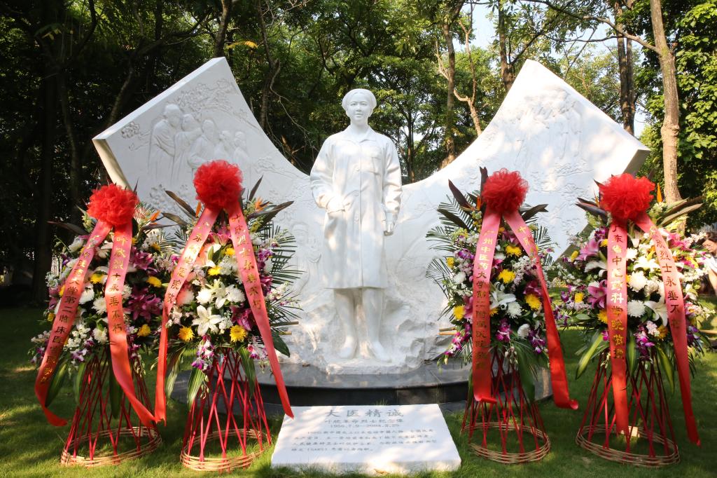 报告会前,广东省中医院在二沙岛医院、大学城医院同时举行“烈士纪念日”纪念活动,医务人员向叶欣烈士雕像敬献花篮。