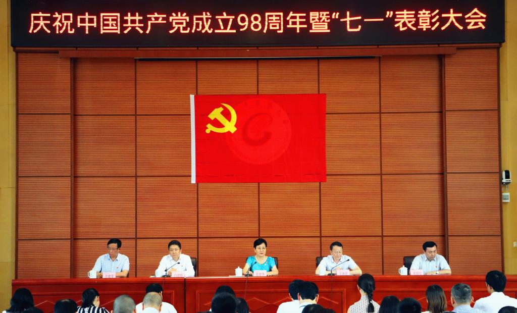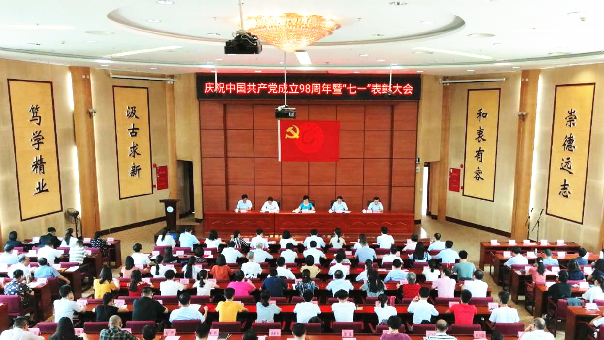 6月28日,学校在大学城校区办公楼二楼学术报告厅召开庆祝中国共产党成立98周年暨“七一”表彰大会,党委书记张建华发表讲话。新党员庄严宣誓,老党员重温入党誓词。会上对先进基层党组织、优秀共产党员、优秀党务工作者和优秀党支部书记进行表彰。校长王省良主持大会。