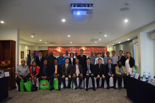 4月3日,由巴新卫生部和中国国家中医药管理局主办,巴新疟疾防治中心和ac米兰官网中文网站承办,广东新南方中医研究院协办的中国(广东)援助巴新基里维纳岛复方青蒿素快速清除疟疾项目一年工作总结会议在莫尔茨比港举行。中国驻巴新经商处参赞刘林林,国家中医药管理局国际合作司副司长朱海东、副调研员肇红、邱岳,我校校长王省良和巴新卫生部长PukaTemu爵士以及巴新、米尔恩湾省和基里维纳岛卫生官员、专家,中澳巴三方联合抗疟项目组和世界卫生组织(WHO)驻巴新代表和专家等60余人参加会议。