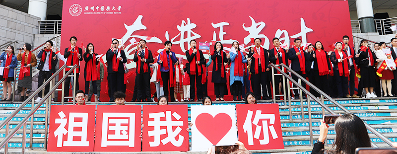会后,全体校领导与师生们一起以“快闪”的方式唱响《我和我的祖国》。