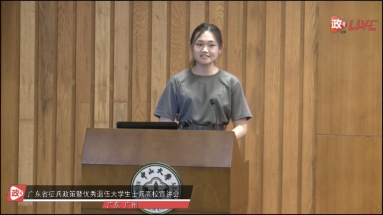 近期,我校中药学院张燕珊同学作为优秀退役大学生士兵代表,参加了全省征兵政策暨优秀退役大学生士兵进高校宣讲活动。在宣讲活动中,张燕珊同学发扬部队优良作风,用自身从军经历和典型事迹鼓舞号召大学生参军入伍,起到了良好的示范作用,受到广东省人民政府征兵办公室通报表彰。