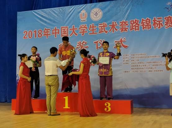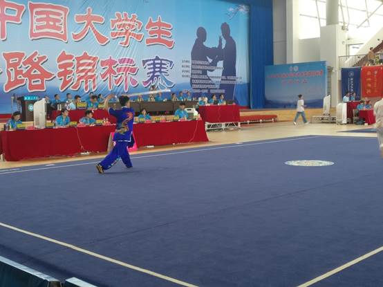 我校派出由体育健康学院院长潘华山任领队,副院长李兆伟、刘艳君老师任教练和8名运动员组成的11人代表队参加了本次比赛。其中,国际学院林元凯获得男子丙组八卦掌冠军,体育健康学院刁俊镔获得男子丙组软器械冠军,经济与管理学院陈逸健获得男子丙组通臂拳冠军。