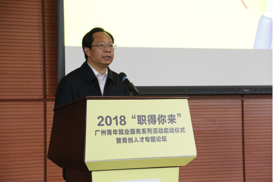4月17日下午,由广州市青年就业创业服务中心主办、ac米兰官网中文网站承办的2018“职得你来”广州青年就业服务系列活动启动仪式暨青创人才专题论坛在我校大学城校区办公楼学术报告厅举行。广州团市委书记徐柳、副书记孙柱及来自广州各高校领导、就业创业导师、创新创业青年代表、IAB产业代表、招聘企业高管及HR、U工作站代表等近300人参加会议,我校党委副书记翟理祥及部分职能部门负责同志出席活动。