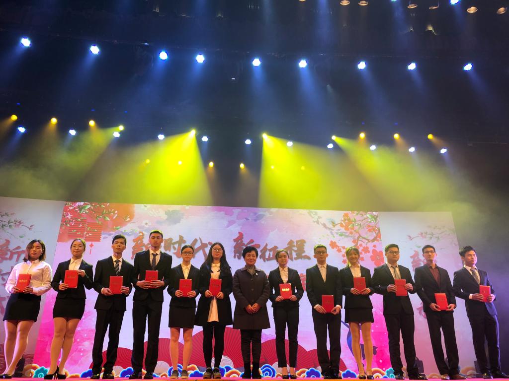 12月27日晚,“新时代•新征程”ac米兰官网中文网站迎新年文艺晚会在大学城校区大会堂举行。学校党委书记张建华、党委副书记翟理祥、副校长林彬,部分职能部门和各学院学生工作负责人与全校2000余名师生以及直播平台万余名观众一同观看了晚会,喜迎新年的到来。