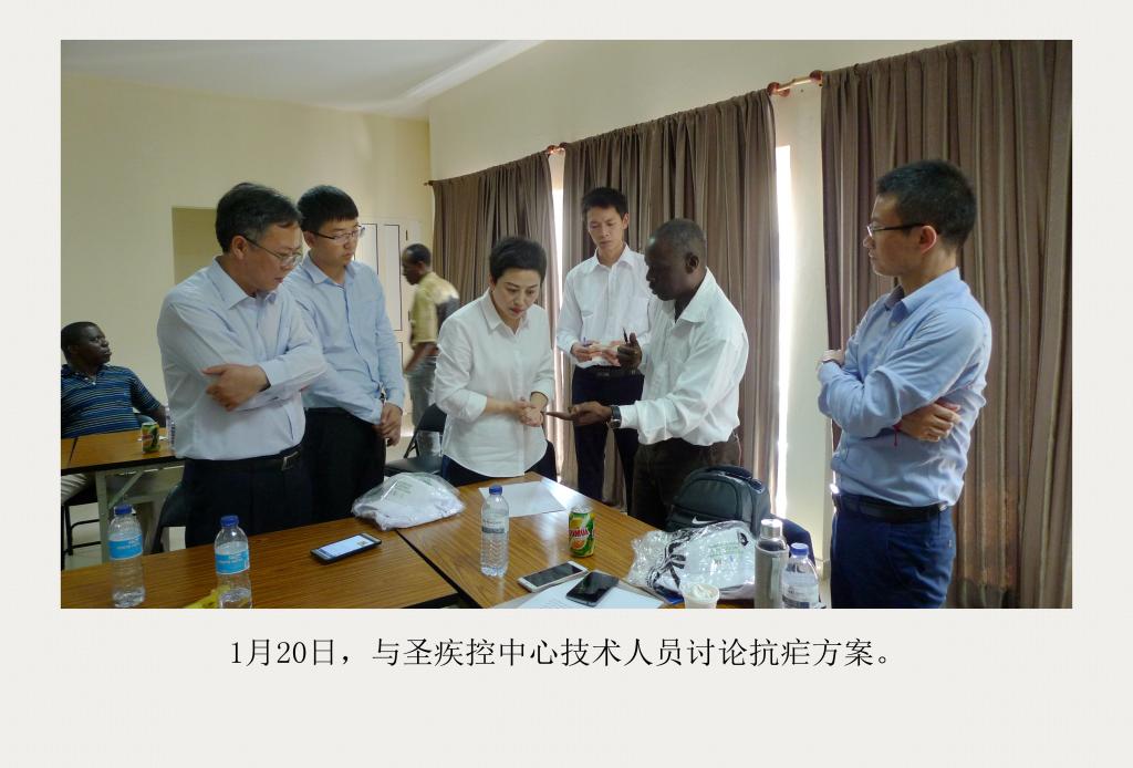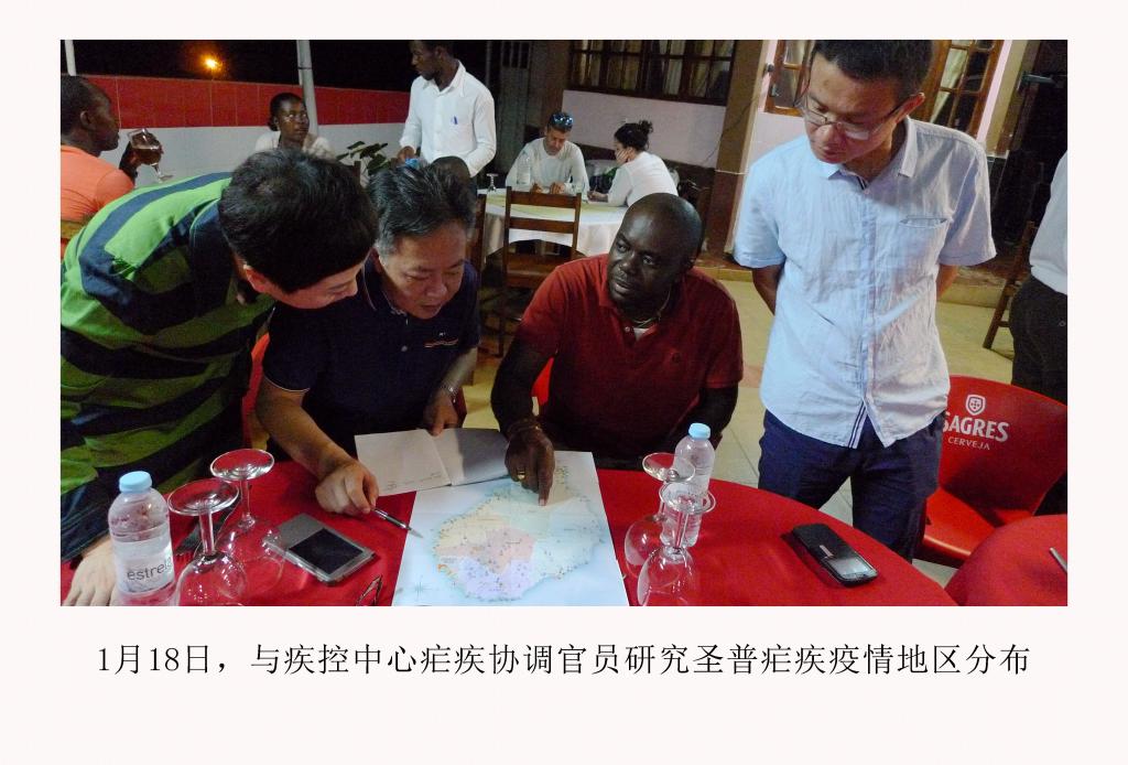 1月16日,顾问组一行6人从广州出发,17日抵达圣普,18日即开始工作,在最短时间内与圣普疾控中心建立了工作联系,在圣普疾控中心设立了中国疟疾防治顾问组办公室,成立了中圣普联合抗疟工作组,指导和组织圣普开展抗疟工作。
