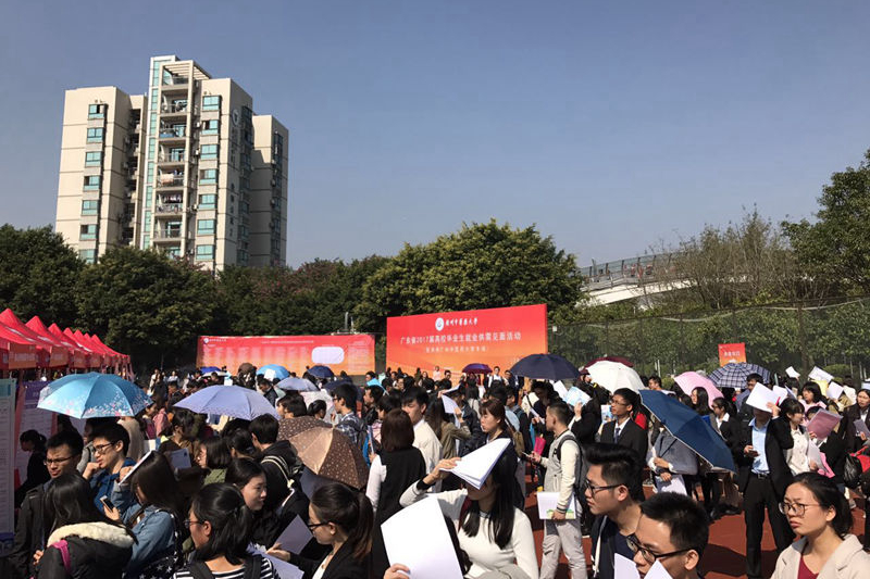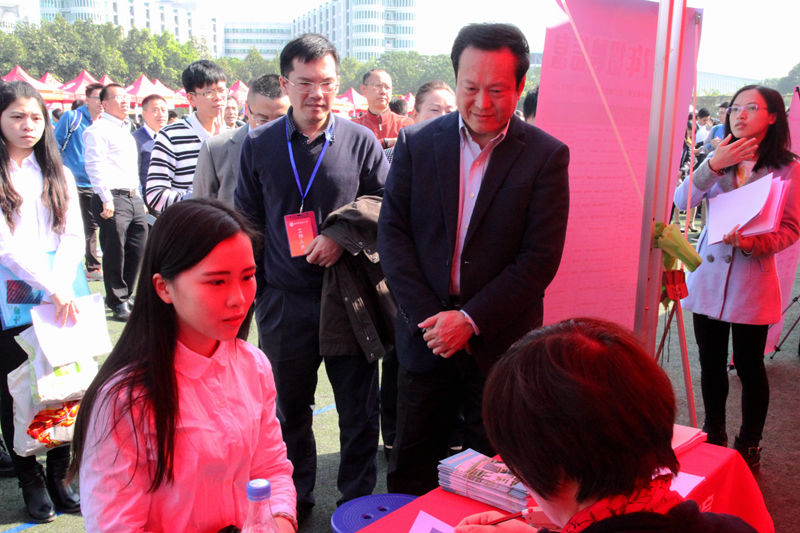 12月1日,广东省2017届高校医药类毕业生供需见面会在我校大学城校区举行。本场供需见面会共有省内外近300家医药类企事业单位和卫生行政部门前来参会,提供就业岗位13000多个,来自省内外的近万名毕业生到场应聘。学校党委书记黄斌、副校长林彬到会场视察,并与用人单位和毕业生交谈。