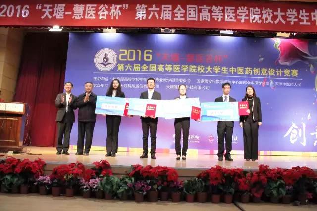 11月12日,在天津举行的2016“天堰-慧医谷杯”第六届全国高等医学院校大学生中医药创意设计竞赛决赛中,我校第三临床医学院学生邓铭聪团队的作品《新型中药熏蒸腱鞘炎复合支具》(指导老师:柴生颋)和针灸康复临床医学院学生黄缨媛团队的作品《中药+贝壳印香系列设计》分别荣获空间和平面两个组别一等奖,占大赛四个最高奖项的一半。