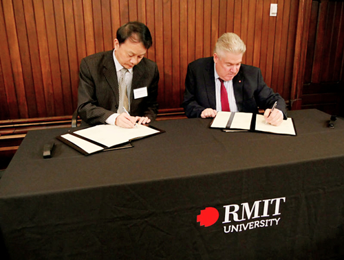 当地时间2016年10月28日上午,我校与澳大利亚皇家墨尔本理工大学(下称“RMIT”)签署两校合作办学协议的仪式在RMIT位于墨尔本城区的市中心校区1号楼举行。