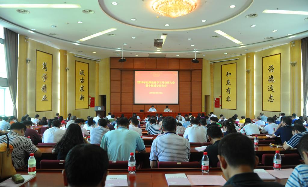 9月13日,我校在大学城校区召开2016年纪律教育学习月动员大会,党委副书记、纪委书记张建华主持会议,党委书记黄斌作动员报告。全体在家校领导,校本部副处级以上干部,各直属附属医院纪委书记、副书记、专职纪检监察干部,校本部科级干部及辅导员代表共200余人参加会议。