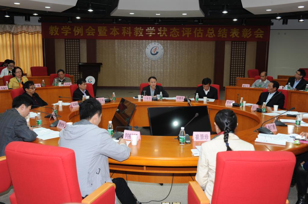 1月8日上午,我校在大学城校区举行本学期最后一次教学例会暨2015年本科教学工作状态评估总结表彰会。校长王省良、副校长许能贵出席会议,学校督导专家、相关职能部门和二级学院负责人、教研室主任和学生校长助理代表等近100人参加会议。