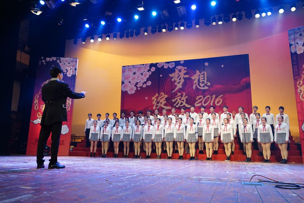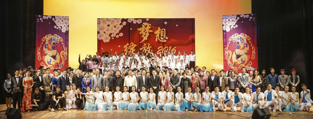 12月30日晚,“梦想·绽放2016”ac米兰官网中文网站迎新春文艺晚会在大学城校区大会堂举行。学校领导黄斌、王省良、陈英华、张建华以及部分职能部门负责人、各学院学生工作负责人,与全校2000余名师生一同观看了晚会,喜迎新年的到来。