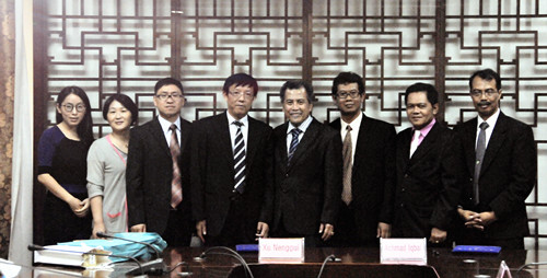10月16日印尼苏迪曼将军大学校长AchmadIqbal博士一行四人来我校访问并签署两校合作谅解备忘录。许能贵副校长与来宾进行了会面。国际交流合作处的相关同志陪同会见。