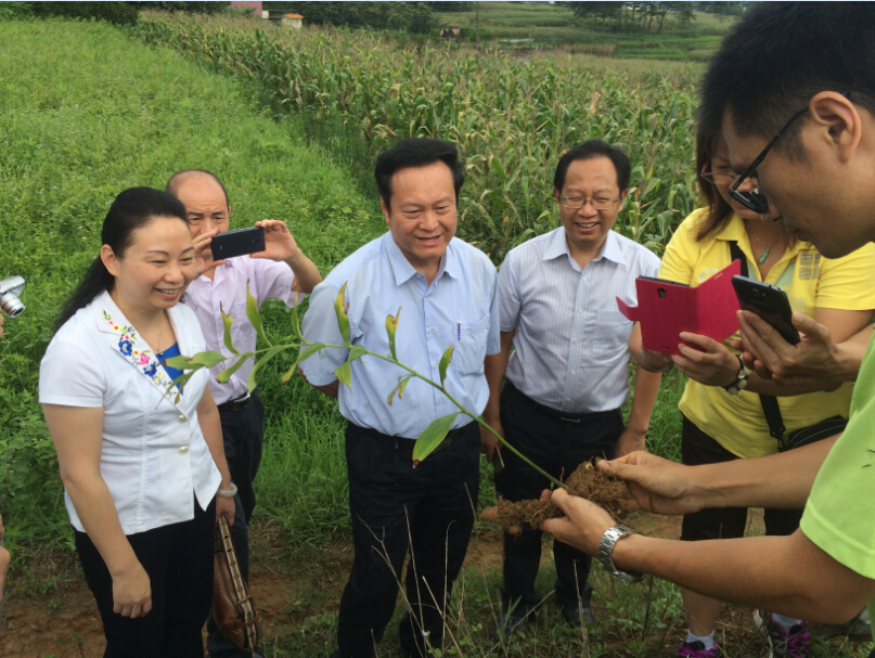 在大崀村,黄斌一行检查了我校帮扶大崀村建设的玉竹种植示范基地、农村淘宝大崀村服务站和建设中的大崀村文化室,并与县、镇、村有关领导进行了座谈。