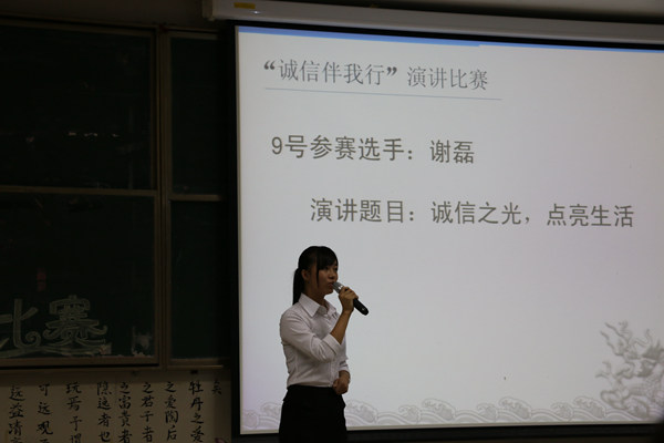 为践行社会主义核心价值观,大力弘扬诚信传统美德,增强学生的诚信意识,促进国家助学贷款工作的顺利开展,由学生处主办、经济与管理学院协办的"诚信伴我行"演讲比赛于6月3日在综合楼104室举行。 本次比赛共有13位选手参赛,他们都是获得过资助的贫困学子。经过激烈的角逐,来自第一临床医学院的吕婷婷荣获一等奖;二等奖由第一临床学院的谢磊和针灸康复临床医学院的王潇获得;针灸康复临床医学院的黄缨媛、体育健康学院的冉红梅、中药学院的余朋倩荣获三等奖。 同学们纷纷表示,将以本次演讲比赛为契机,把诚信贯彻到生活的方方面面,真正做到诚信伴我行。