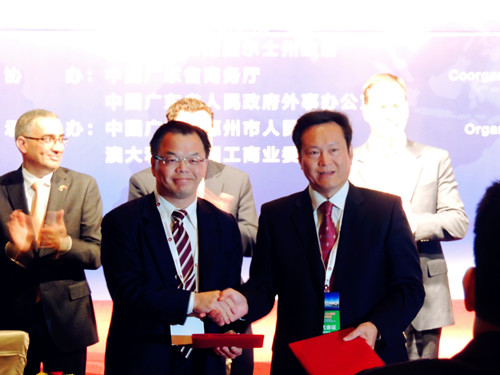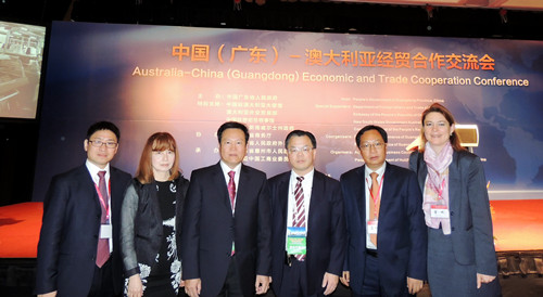 5月25日,中国(广东)—澳大利亚经贸合作交流会在悉尼举行,中澳两国政界、商界代表共同回顾了两国友好往来的历史,并展望了双方深化互利合作的前景。招玉芳副省长主持会议,中共中央政治局委员、广东省委书记胡春华,中国驻澳大利亚大使马朝旭,澳大利亚新南威尔士州州长贝尔德,澳大利亚联邦外交和贸易投资部次长西奥博等嘉宾出席了当天活动。交流会期间共签署了33个中澳投资合作项目,金额达72.78亿美元。我校党委书记黄斌教授代表学校在此次中澳合作交流会上与皇家墨尔本理工大学校长代表签署了合作备忘录,参加了新南威尔士州州长贝尔德的宴请晚会。