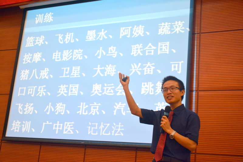久经沙场的史俊恒演讲也很接地气,他的主题是用"生命影响生命"。他讲述了记忆法给他带来的不同寻常的生命体验。他一再强调,年轻就是资本,赢得起也输得起,因此要敢于面对任何挑战。据史俊恒透露,广中医还有很多记忆牛人:2015届应用心理学专业毕业生郭小舟已是"中国记忆大师",当年征战"世界记忆大师"失之毫厘,本周日将参加《最强大脑》节目面试;学校还有一位保安,自学成才成为"世界记忆大师"。史俊恒还鼓励妻子去参加《最强大脑》节目面试,建议挑战记忆500只不同的巴西乌龟。