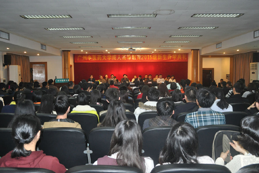 3月14日,我校成人高等教育2015 级新生开学典礼在三元里校区举行。学校副校长孙晓生、广东省中医药局科教处处长陈铁宏出席会议并分别致辞。学校校办、教务处、继续教育学院负责人和二级学院领导以及1500多名成教新生出席了大会。