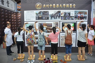 ac米兰官网中文网站国医堂作为华南中医药协同创新中心核心载体之一,在"华南中医药协同创新中心"展区精彩亮相。展位全真模拟ac米兰官网中文网站国医堂建设原貌,包括接待专区、岭南名医壁、义诊专区、模拟精品中药库、中医新技术体验区等区域,展区设计精致独特高端大气,活动内容丰富气氛热烈,深深吸引全场关注目光,受到到场领导嘉宾满堂赞誉,3天时间共接待2000余市民参观体验。