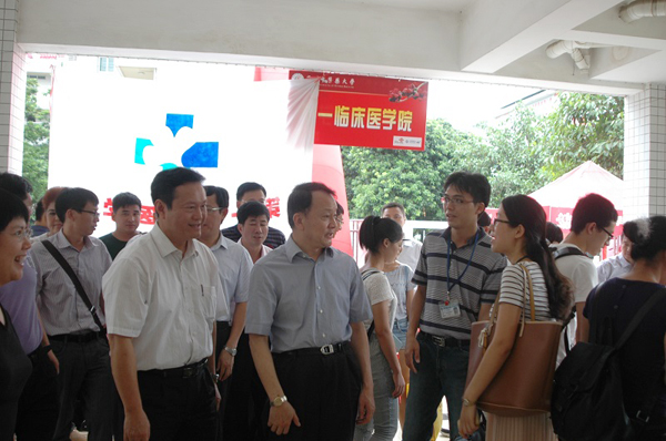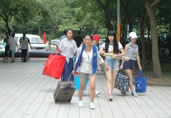 9月12日是我校新生报到的日子,校园内处处洋溢着喜庆和热闹的气氛。学校党委书记黄斌、校长王省良、党委副书记陈英华,副校长刘晟、许能贵到迎新现场,与新生及家长亲切交谈,并深入学生宿舍看望新生和家长。 据统计,2014年我校共招收境内学生4023人,其中本科学生2696人,硕士研究生880人,博士研究生147人,专科学生300人;涉及医学、理学、工学、管理学、经济学、文学、教育学、哲学、法学等9个学科门类。境外学生共招收636人(含新加坡合作办学90人),其中境外本科生452人,研究生184人,分布在全球20个国家和地区。