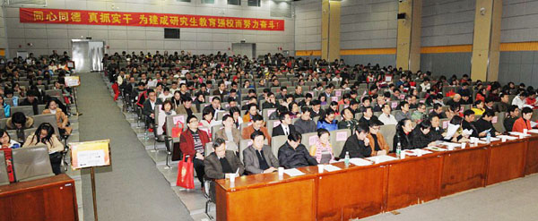 1月10日,我校学位与研究生教育工作会议在大学城校区举行。会议回顾我校学位与研究生教育35年来,特别是近5年来的突出成绩,分析教育现状、明确工作思路,部署深化研究生教育改革。会议表彰一批研究生教育先进集体、优秀导师、优秀管理工作者和优秀博士后合作导师。学校党政领导,校本部中层干部,研究生培养各二级单位主要领导、主管研究生教育领导及研究生工作秘书,研究生课程主讲教师代表,研究生导师代表,研究生代表等500人参加会议。党委副书记陈英华主持会议。