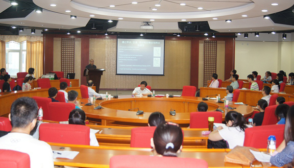 在简短而又隆重的签约仪式之后,杨庆林教授面向我校师生作了题为"临床前模式动物在心脏病和糖尿病研究中的应用"的讲座,受到师生们的热烈欢迎。