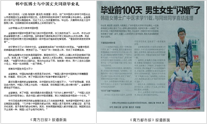 金智慧的父母特地从韩国赶来参加女儿、女婿的毕业典礼。父母对女婿比较满意,认为不是韩国人也没关系,只要对女儿好就行了,甚至表示以后可以去海南帮忙带孩子。如今,夫妻俩都已经与我校附属三亚中医院签了8年的合同,很快将携手飞赴天涯海角继续爱情与事业。他们因为中医结缘,也将会把中医作为夫妻毕生的事业继续下去。