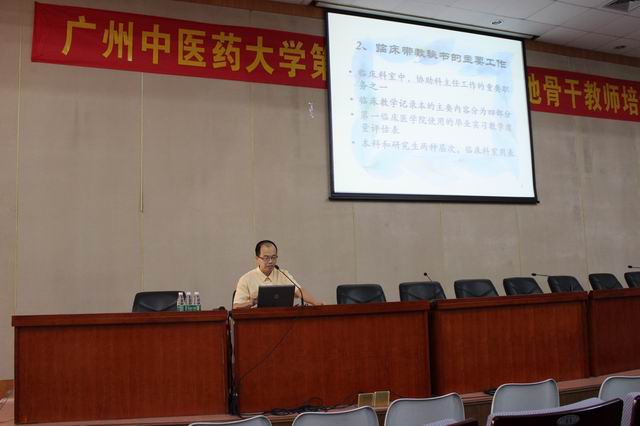 本次培训班是为了更好地贯彻和落实教育部、财政部《关于"十二五"期间实施"高等学校本科教学质量与教学改革工程"的意见》(教高〔2011〕6号)精神,进一步落实我校2013年实践教学工作要点,在总结前八期临床教学基地骨干教师培训班经验的基础上举办的。培训班邀请了第一临床医学院郑泽棠教授、第二临床医学院陈伯钧教授和第一临床医学院于征淼副教授,分别就临床实践教学规范化带教,教师的职业素质和临床教学组织,以及临床教学管理等内容做了专题讲座。