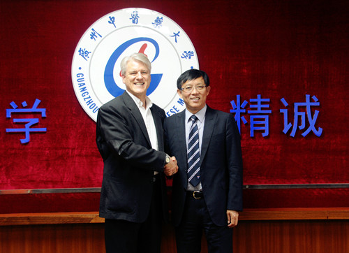 3月27日,美国中西部东方医学院院长William Dunbar先生携夫人及该校谢金华教授访问我校,许能贵副校长及相关部门负责人与Dunbar先生一行举行了座谈。 美国中西部东方医学院与我校有二十多年的友好合作关系,该校多次派出学生研修团到我校临床实习或短期进修,并曾与我校合作开办博士学位课程班。此次Dunbar先生来访,希望重启此项目,并与许能贵副校长在合作细节方面进行了深入探讨。许能贵副校长代表学校表示,将全力支持与中西部东方医学院的合作项目,相信在多年友好关系的基础上,两校合作将进一步发展和深化。