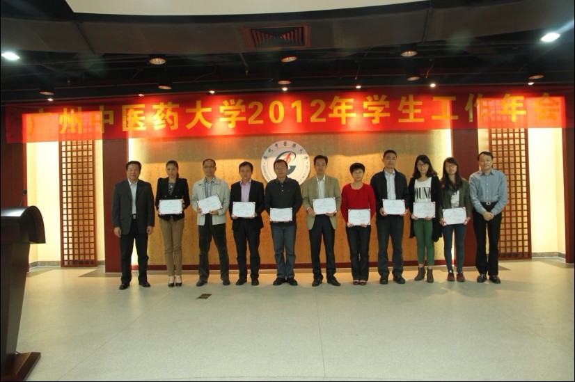 与会校领导为获得2011年度学生工作先进单位、优秀专职辅导员、优秀兼职辅导员和2012年学生工作优秀论文获奖者颁奖。