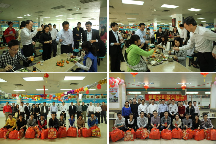 金龙摆尾辞旧岁,银蛇飞舞巳年到。2月7日,学校大学城校区第二饭堂和三元里校区学生饭堂张灯结彩,处处洋溢着新年的欢乐氛围。学校党委黄斌书记、校长王省良、陈英华副书记,党办、校办、学工部、团委、研究生处、财务处、保卫处、后勤集团等相关部门负责人以及各二级学院领导、辅导员、老师与留校学生共享团年宴。