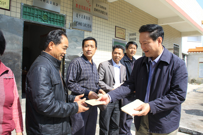 1月27日,学校党委书记黄斌率领党办、组织部、纪委(监察处)等部门同志前往我校扶贫开发"规划到户责任到人"对口帮扶点--河源市连平县隆街镇贵岭村开展扶贫"双到"工作总结暨新春慰问活动。