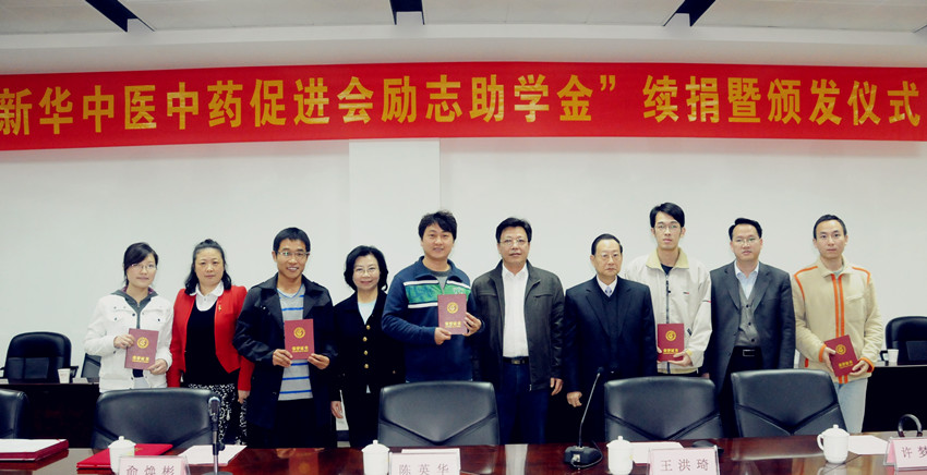 香港新华中医中药促进会成立于1976年,是一个以联络国内外中医药学术团体,开办中医药讲座等形式,提高香港中医药的研究水平和临床效果为宗旨的社会团体,长期以来与我校联系密切,对我校的建设与发展十分关心和支持。从2010年开始,香港新华中医中药促进会在我校设立"ac米兰官网中文网站‘香港新华中医中药促进会励志助学金'",五年内每年资助与奖励我校品德优秀、志向远大、学习刻苦的在校学生三十名。至今已陆续捐款共50万元人民币。