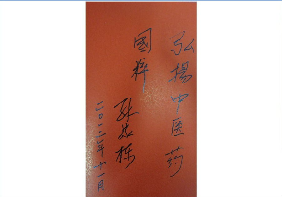 11月27日,中国科学院院士,国际宇航科学院院士,中国第一颗人造地球卫星"东方红一号"技术总负责人孙家栋在王省良校长及张书河副馆长的陪同下参观了广东中医药博物馆。 孙家栋院士于1999年荣获"两弹一星"功勋奖章,2003年任中国探月工程总设计师,2010年1月11日,获得2009年度国家最高科学技术奖。孙院士虽然已是83岁高龄,但仍然精神瞿烁,步伐矫健。他饶有兴致地看完了全部的展陈并欣然题词:"弘扬中医药国粹。"