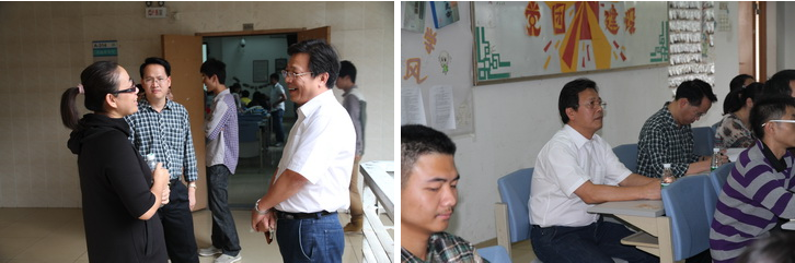 课前,陈英华副书记与任课老师刘艳红副教授亲切交谈,详细了解该门课程的教学情况,并鼓励刘老师及时总结经验,形成自己的教学特色。课堂上,刘老师用"理论结合案例"的方式,细致、生动地为同学们讲解了中国动漫产业的发展状况。她深入浅出,重点突出,与同学们积极互动,同学们反应热烈,积极回答老师的每一个提问,课堂上不时响起一阵阵掌声。陈英华副书记与同学们一样,认真专注,还不时点头表示赞同。课毕,陈书记走上讲台,发表了一段简短的讲话。陈书记作了自我介绍后,对课堂整体效果作了点评,对刘老师的授课给予了肯定和赞赏。他认为,授课老师准备充分,重点突出,讲课过程中与学生有良好的互动,课堂气氛活跃。陈副书记还表示,日后还将更多地与同学们接触,深入了解大家的学习和生活。