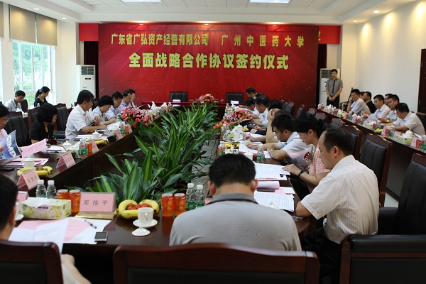 广弘公司是广东省属三大资产经营公司之一,连续多年被评为全国500强企业、广东省最具竞争力50强企业和广东省服务业十强企业,拥有绿色食品、医药健康、新材(原)料、宜居宜业宜旅四大主业和上市公司"广弘控股",一直是我校的良好合作伙伴,早在2007年就与我校合作筹建了省部产学研示范基地,是我校五个示范基地之一。此次战略协议的重点旨在广州国际医药港建设项目,双方将在医药产业成果转化与开发、市场资源共享等方面进行全面战略合作。